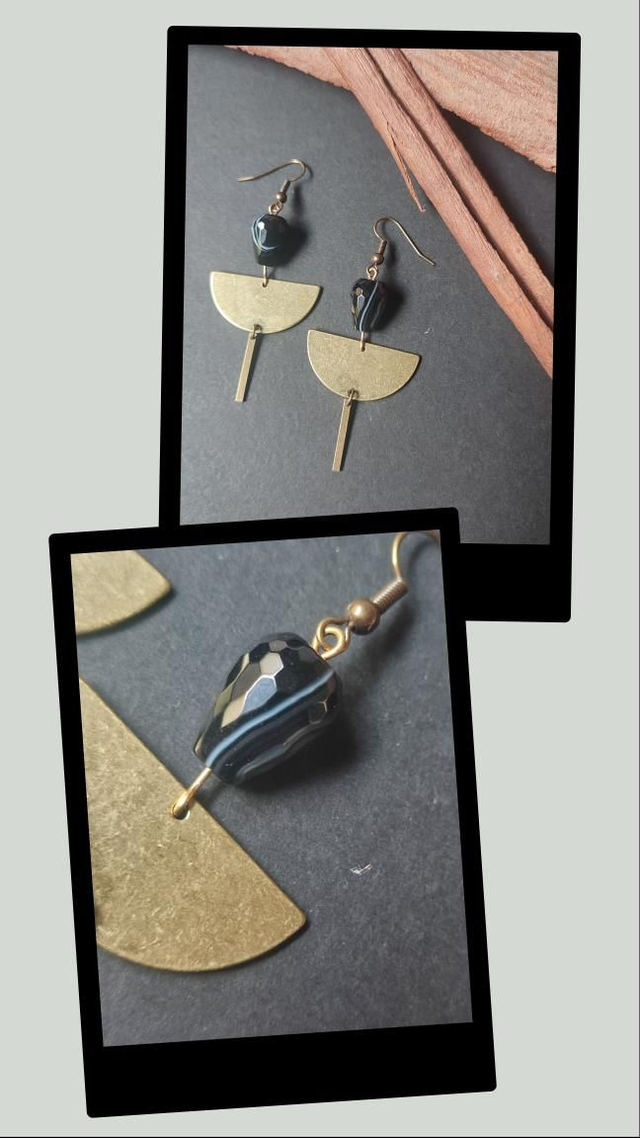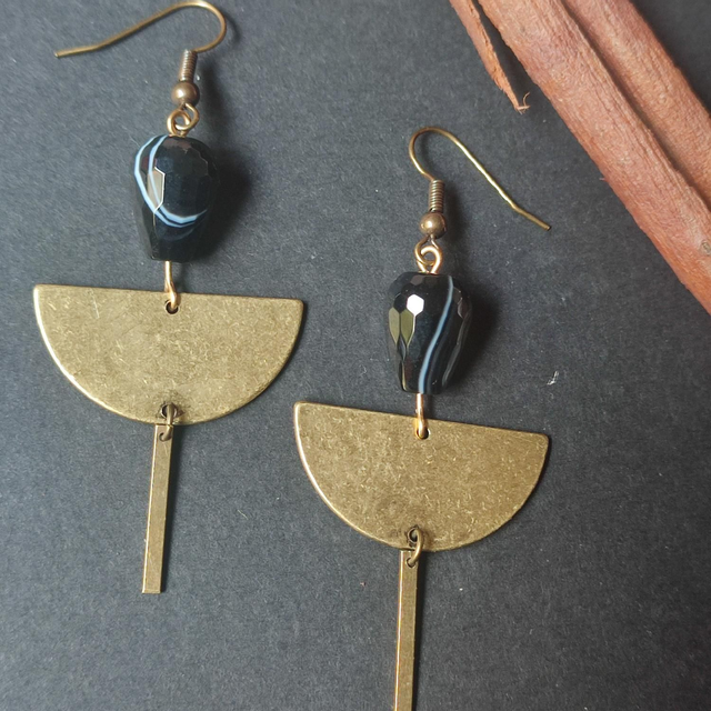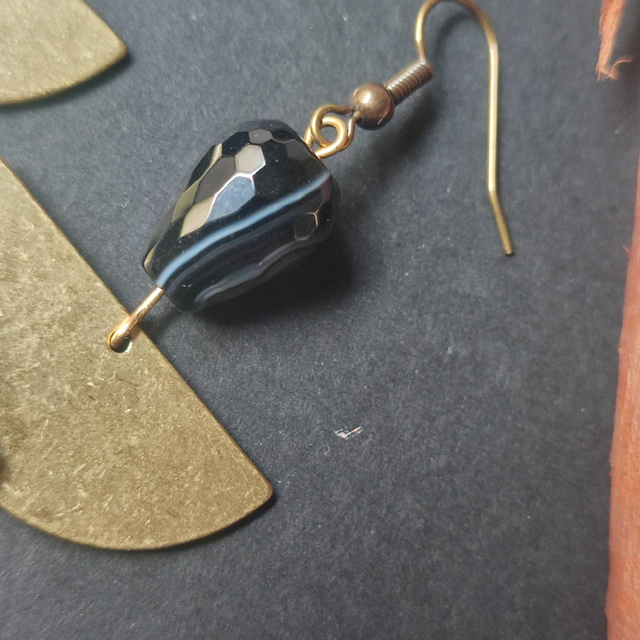 Agate noire aux reflets blancs & bronze, pièce unique,-sans nickel