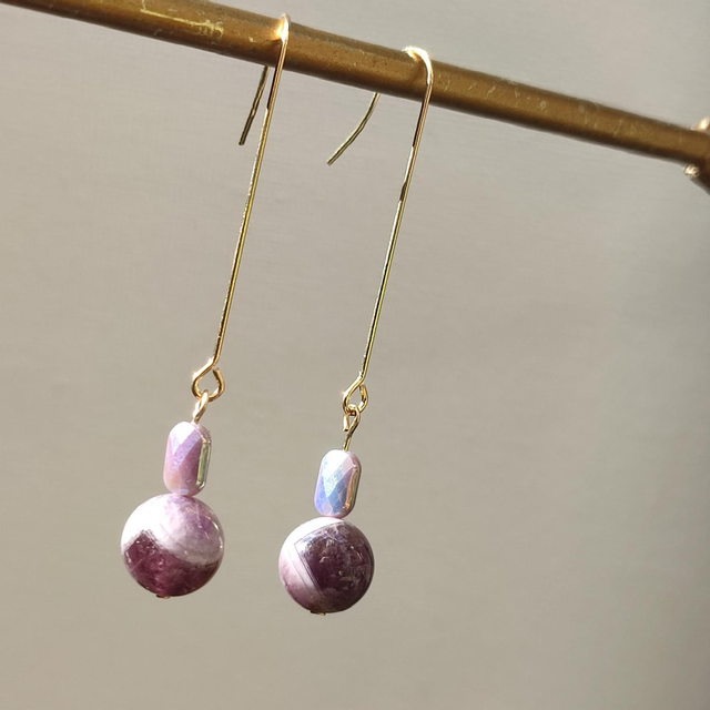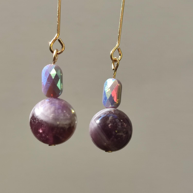 Améthyste et verre aux jolis reflets, acier inoxydable doré -sans nickel, pièce unique