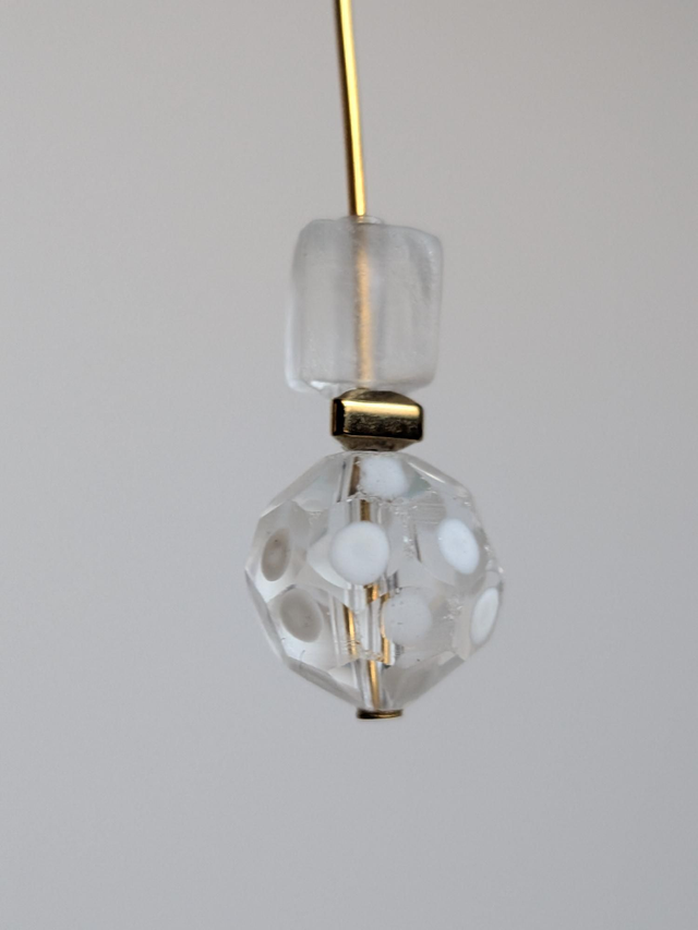 Boucles " cube et pois" longues verre transparent mat et brillant en acier inoxydable doré -sans nickel, pièce unique