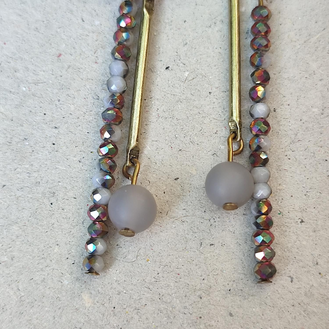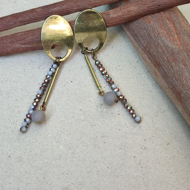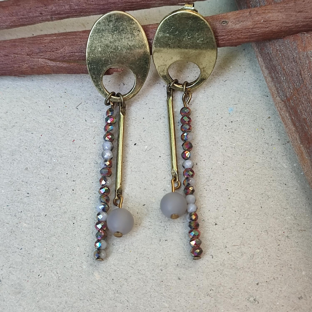 Boucles d'oreilles bronze, pierres naturelles & verre,ton de gris et bruns, sans nickel pièce unique