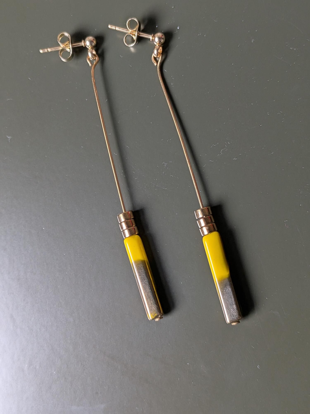 Boucles d'oreilles céramique jaune et or, acier inoxydable doré -sans nickel pièce unique