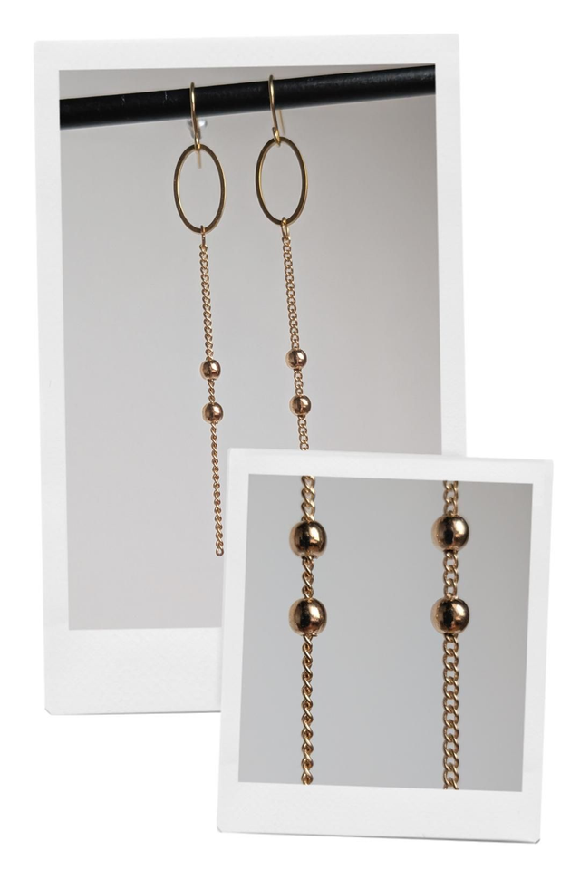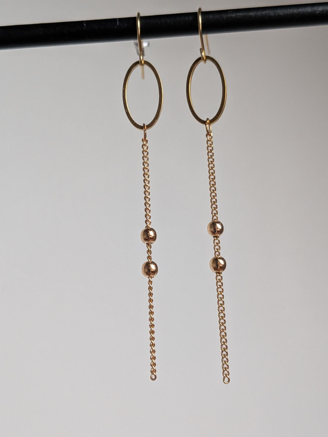 Boucles d'oreilles chaîne et ovale en acier inoxydable doré -sans nickel, pièce unique