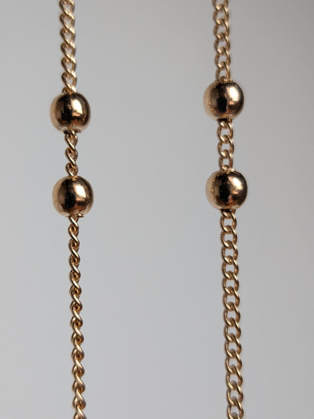 Sautoir agate noire cercle doré avec cubes cuivre et or, goutte en verre noire, monté sur fil de lin, pièce unique