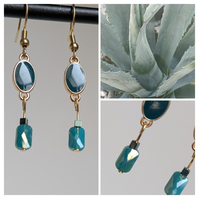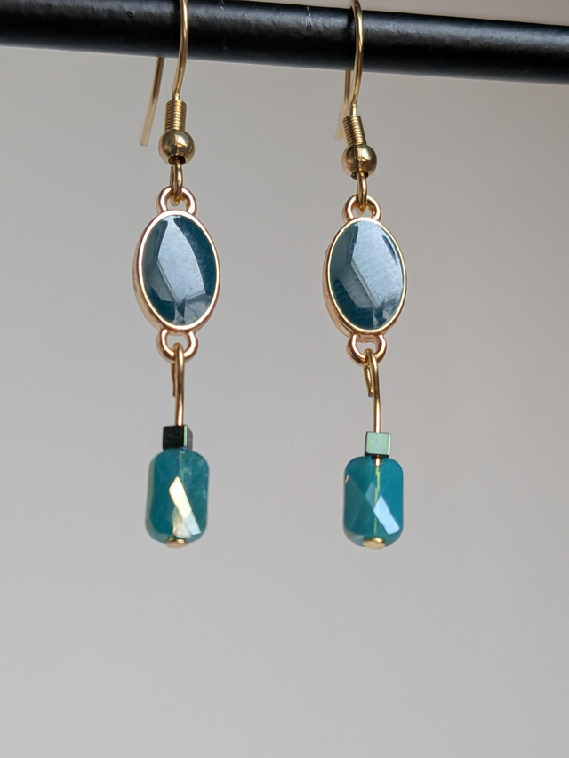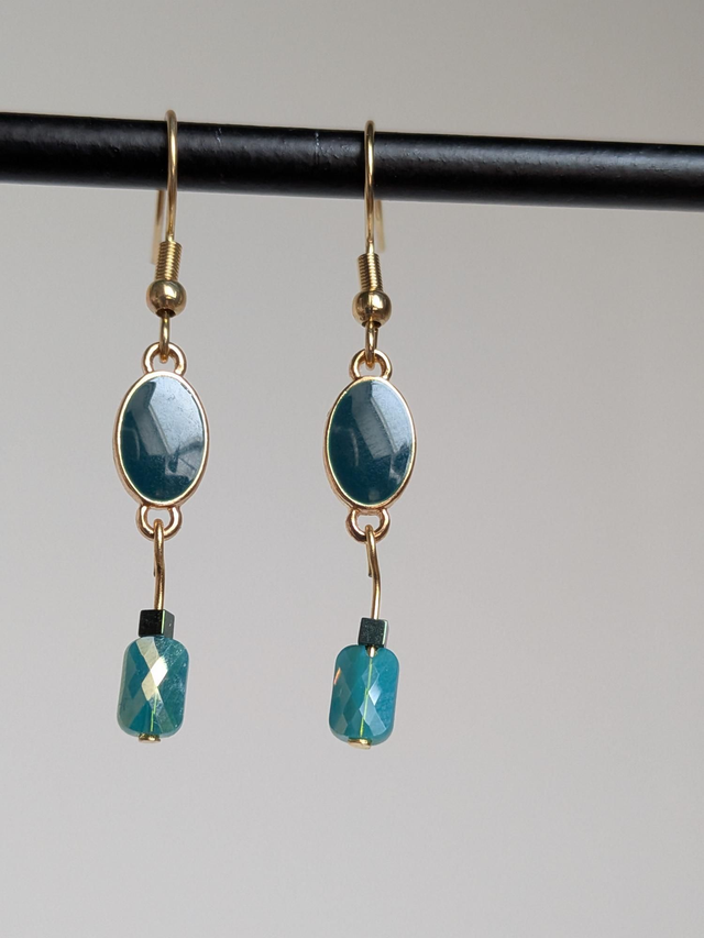 Boucles d'oreilles email et verre turquoise, acier inoxydable doré -sans nickel, pièce unique