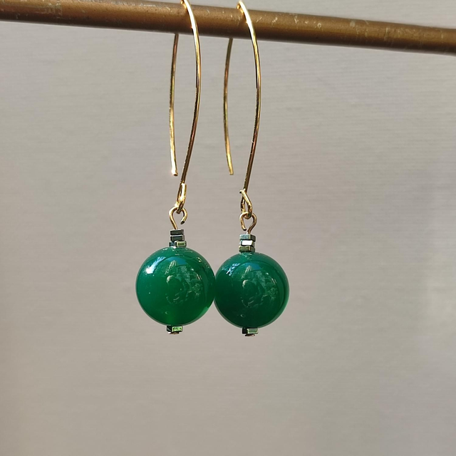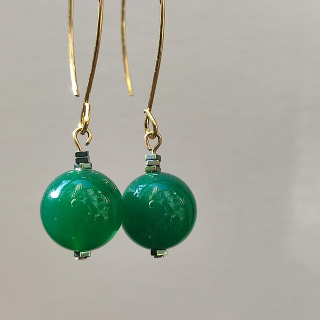 Boucles d'oreilles en agate verte (pierres naturelles) dormeuses en acier inoxydable doré -sans nickel, pièce unique