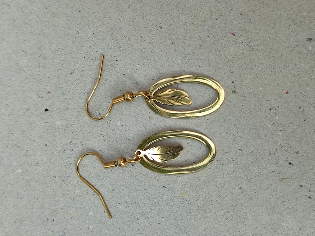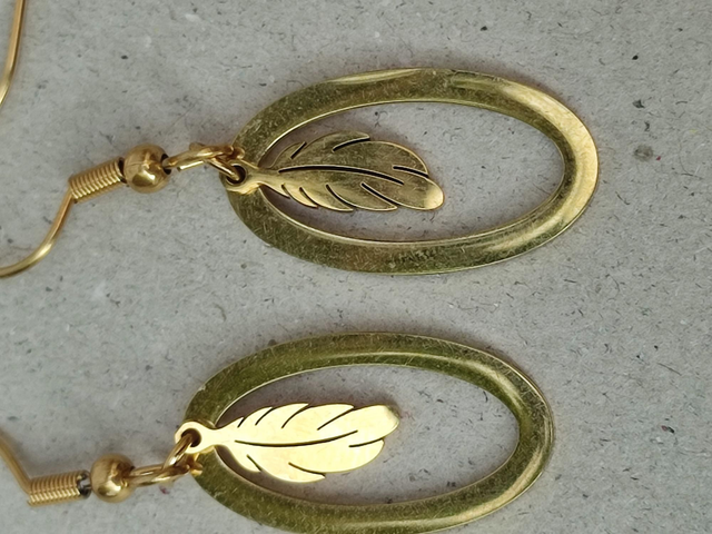 Boucles d'oreilles feuilles et ovales en acier inoxydable doré -sans nickel, pièce unique