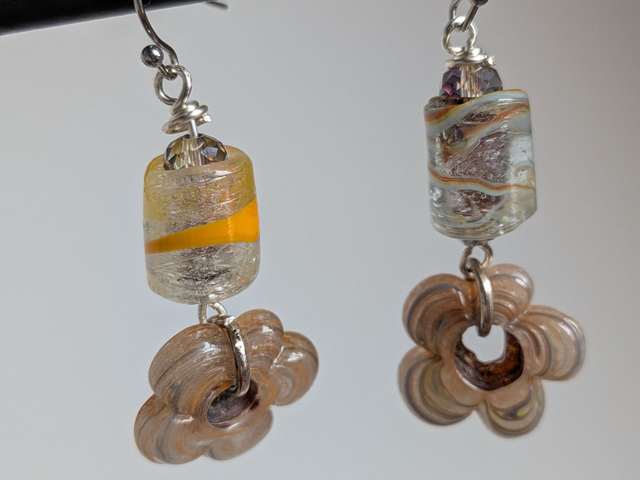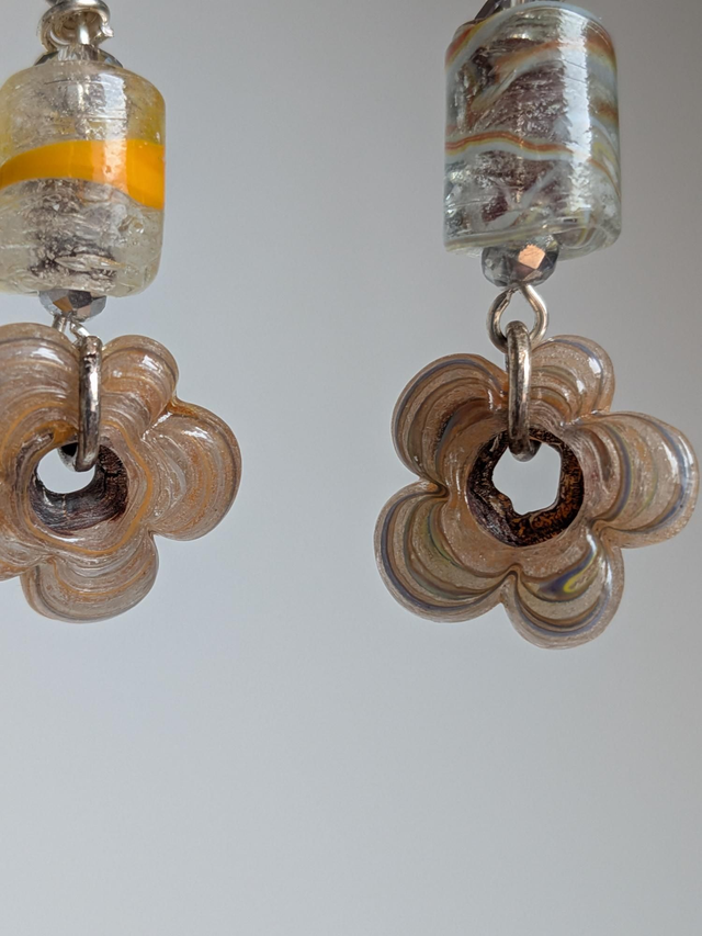 Boucles d'oreilles fleurs en verre de Murano ,acier inoxydable argent-sans nickel, pièce unique