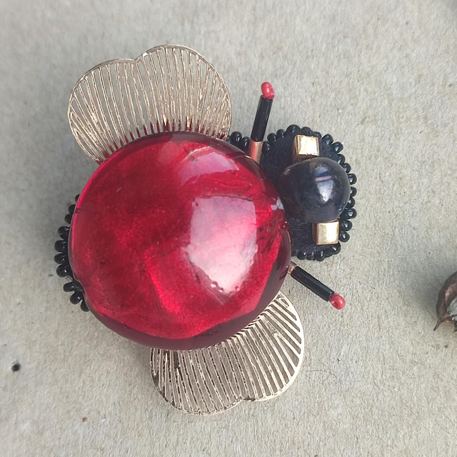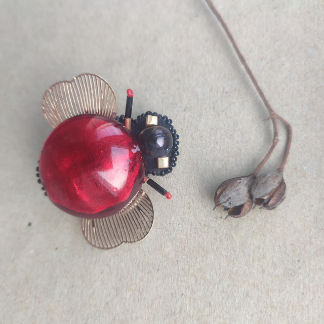 "Bourdon" broche en verre rouge tissée main, pièce unique