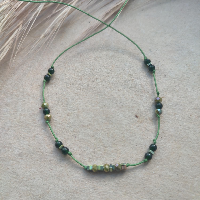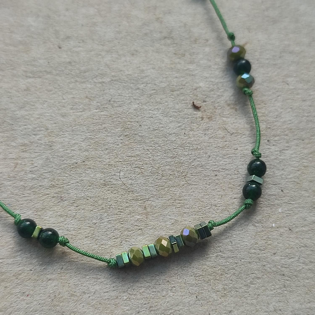 Bracelet agate verte, hématite verte ( pierres naturelles)et perles en verre, réglable et résistant, pièce unique
