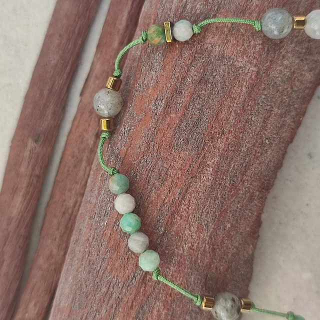Bracelet amazonite et agate aux jolis reflets ( pierres naturelles) réglable monté sur fil de jade résistant
