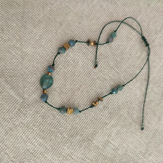 Bracelet apatite ( pierres naturelles) réglable sur fil de jade résistant, pièce unique