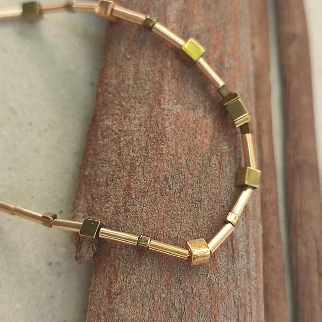 Bracelet carrés en hématite ( pierres naturelles) et verre, réglable et résistant