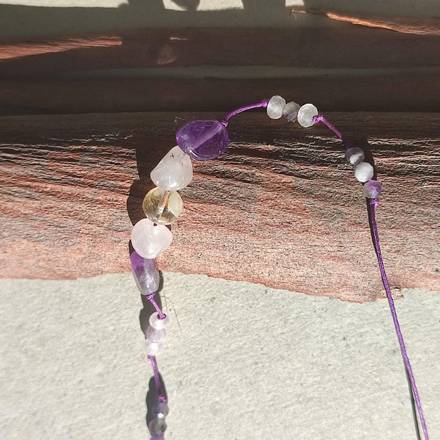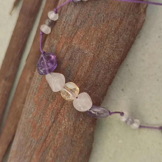 Bracelet en améthyste, citrine & agate rose (pierres naturelles) réglable sur fil de jade