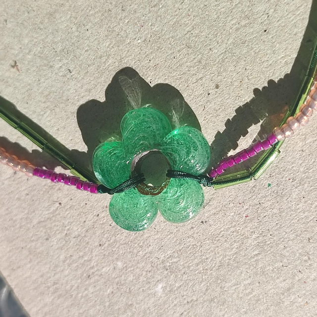 Bracelet fleur en verre de Murano et perles en verre rose,vert, résistant et réglable