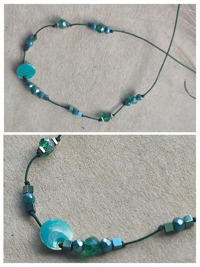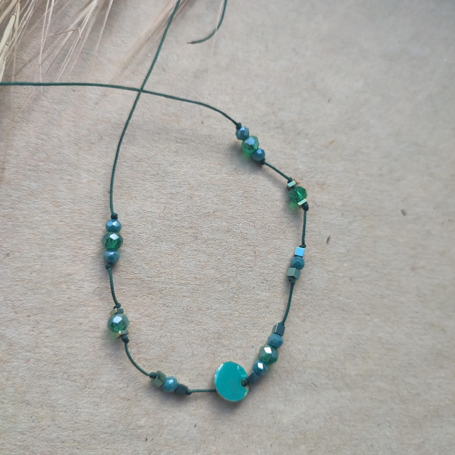 Bracelet perles en turquoise véritable et email et verre, réglable et résistant,pièce unique