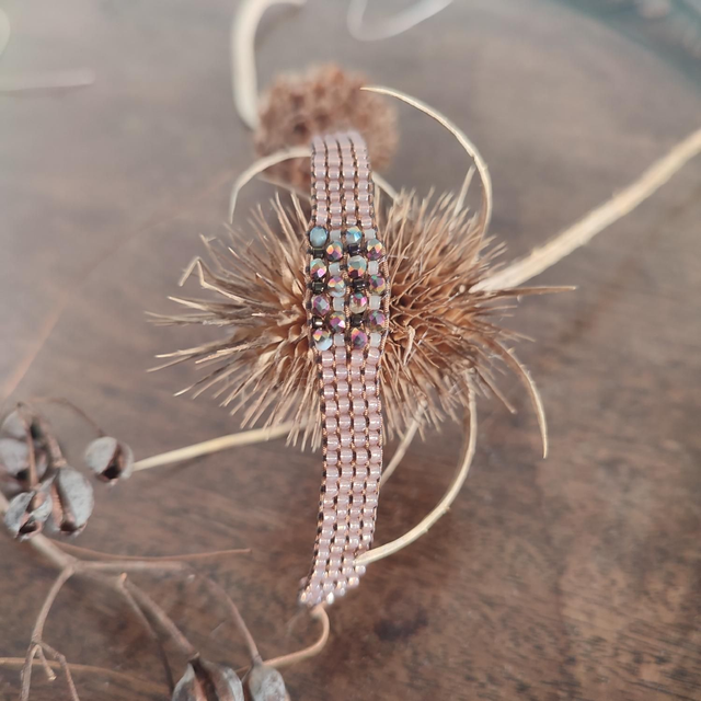 Bracelet tissé main en perles de verre aux jolis reflets réglable et résistant , pièce unique