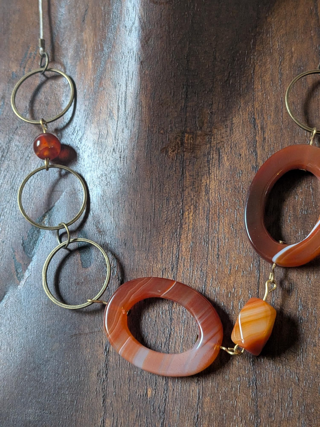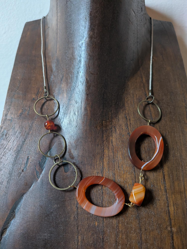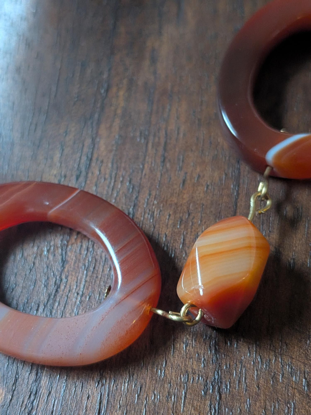 Collier agate orange aux jolis reflets (pierres naturelles) monté sur fil de lin réglable avec chaîne d'extension, pièce unique
