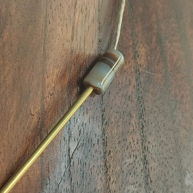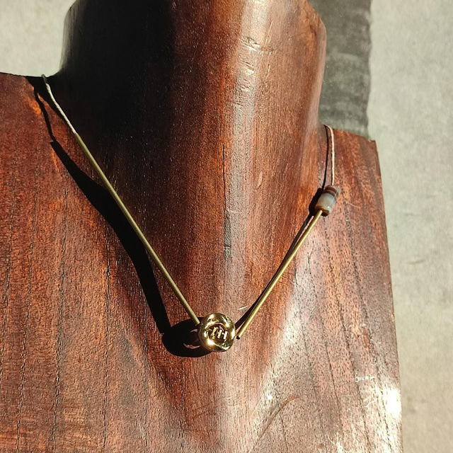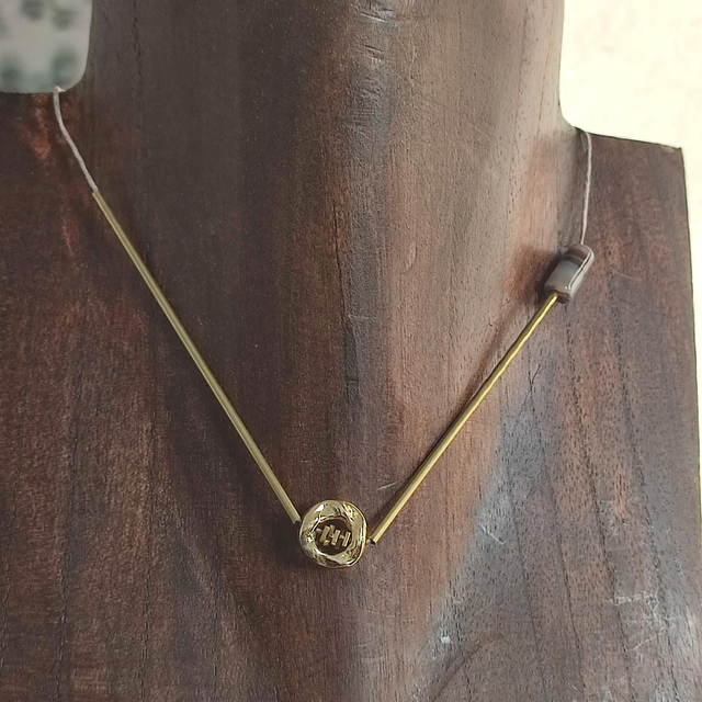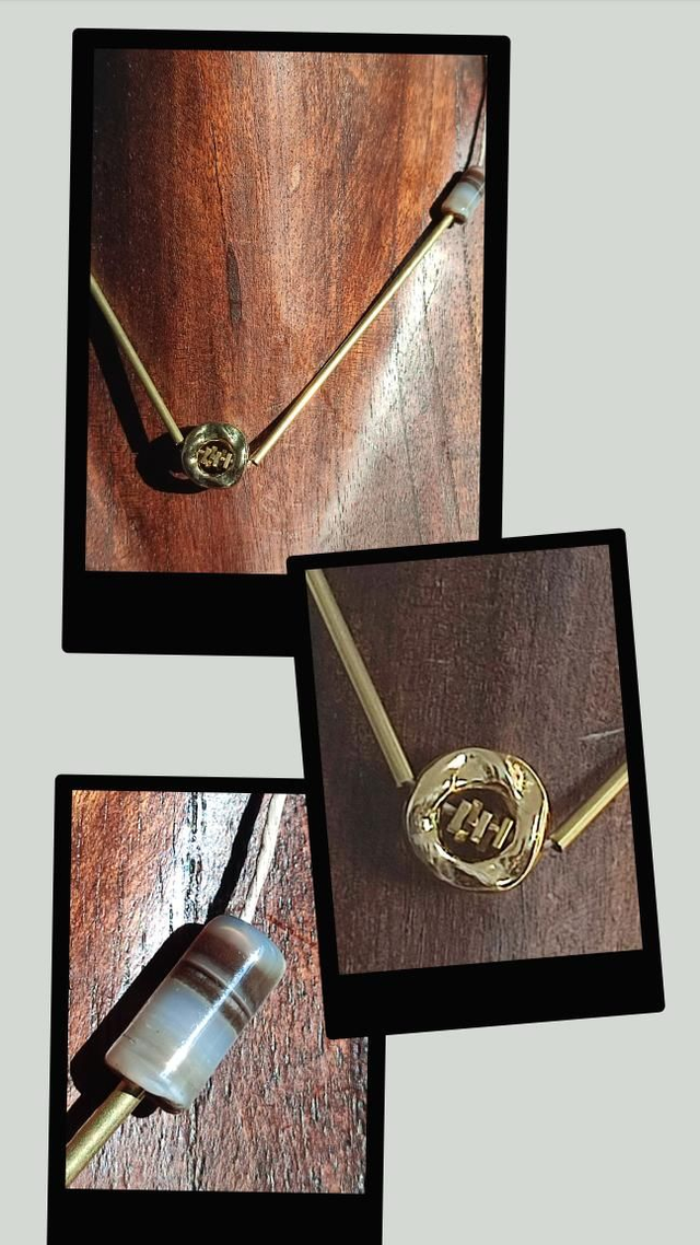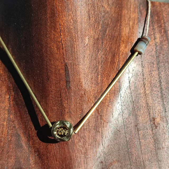 Collier agate ( pierres naturelles) et tiges dorees monté sur fil de lin avec chaîne d'extension en acier inoxydable doré