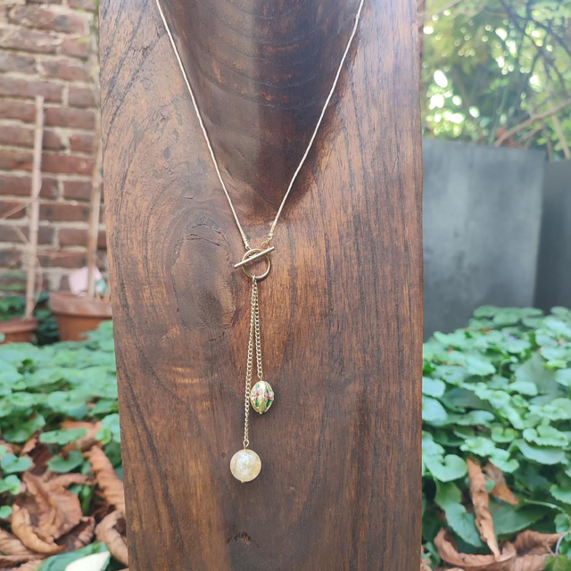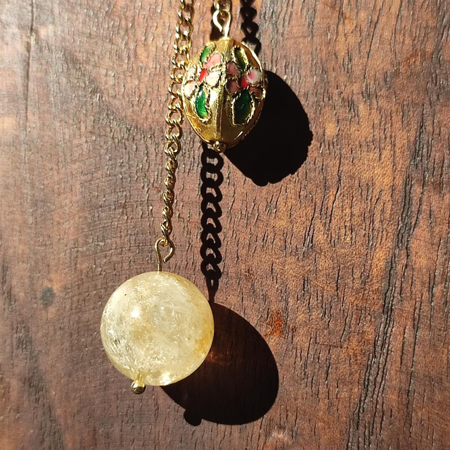 Collier citrine : pierres naturelles & perle cloisonnée, monté sur fil de lin réglable avec chaîne d'extension en acier inoxydable doré, pièce unique.