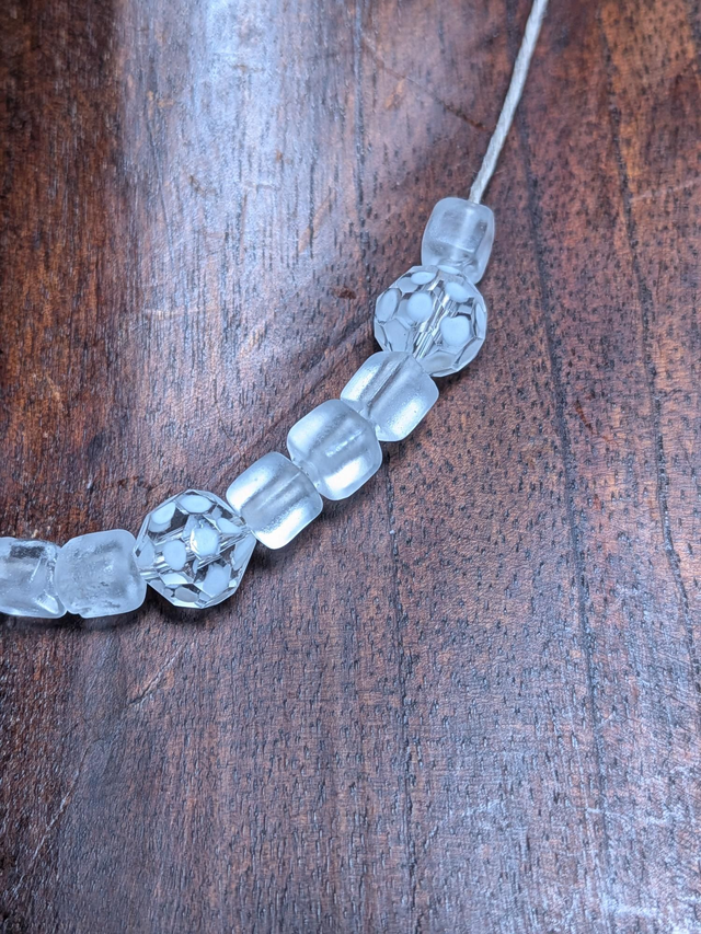 Collier en verre cube transparent et perles rondes à pois blanc, monté sur fil de lin réglable avec chaîne d'extension en acier inoxydable doré, pièce unique