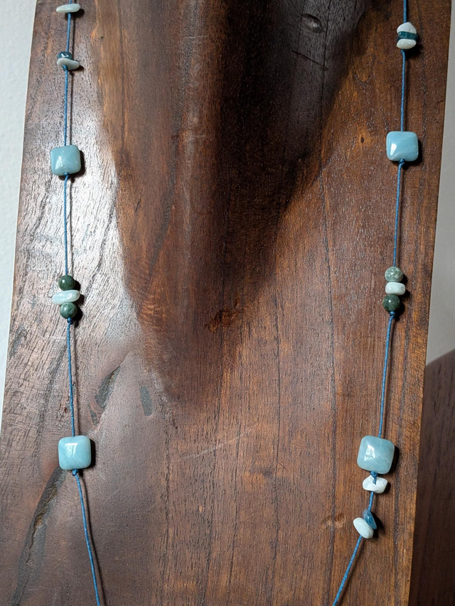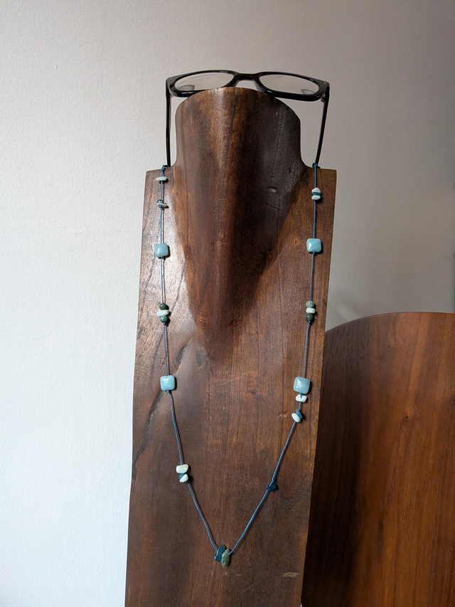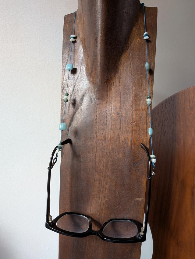 Cordon lunettes en amazonite bleu et agate : pierres naturelles, monté sur fil de jade résistant, pièce unique
