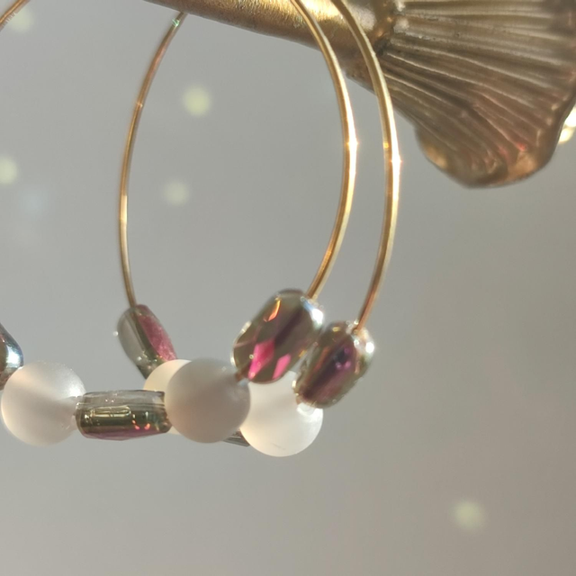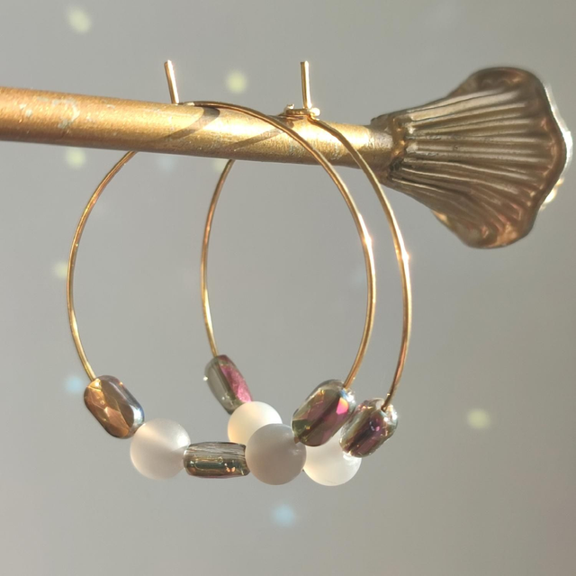 Créoles agate grise, verre et hématite doré, acier inoxydable doré pièce unique sans nickel