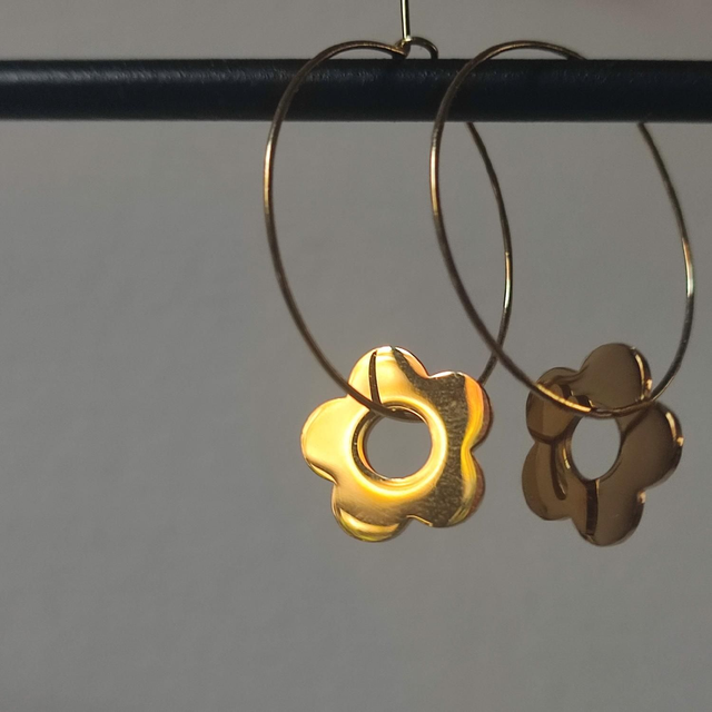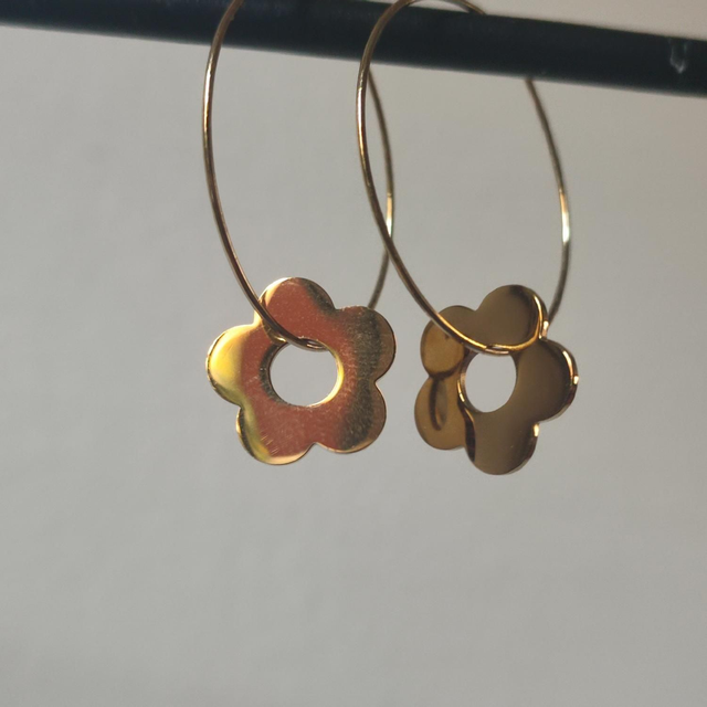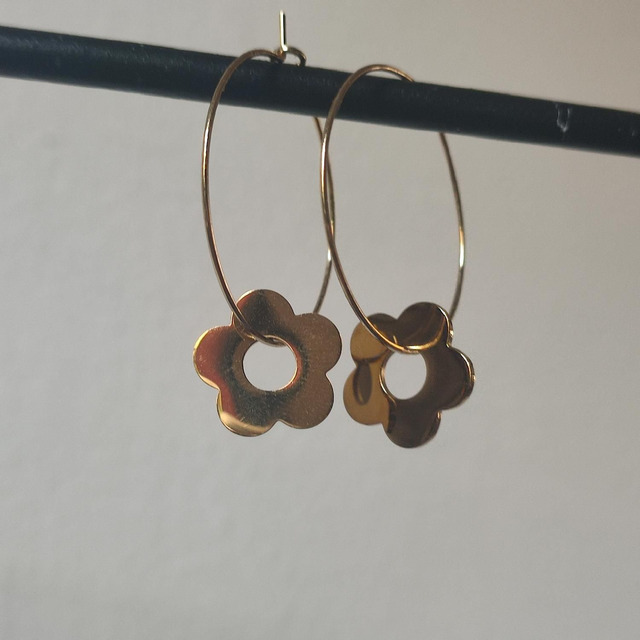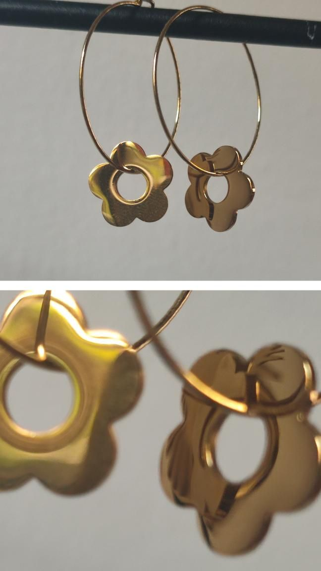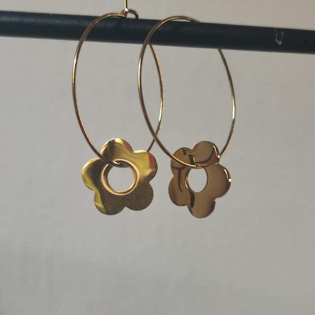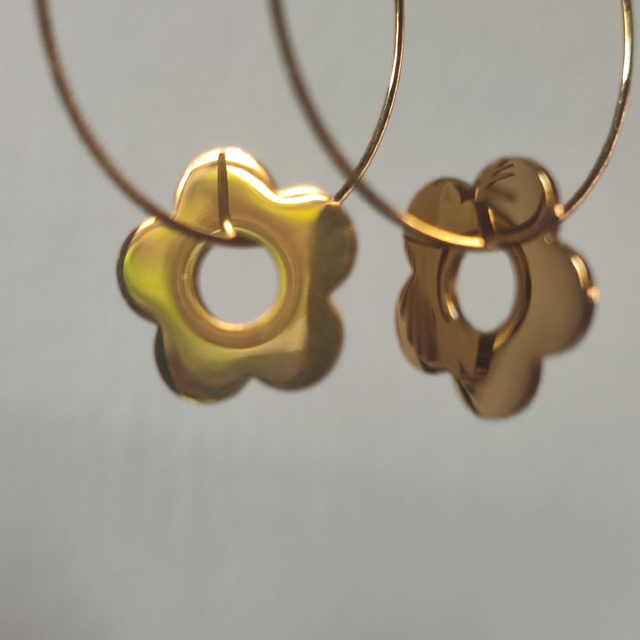 Créoles fleurs, acier inoxydable doré -sans nickel, pièce unique