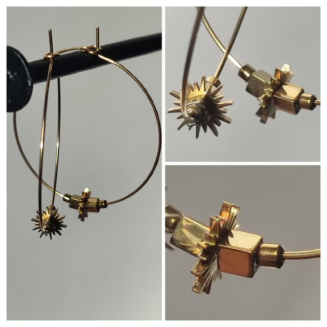 Créoles "soleil" acier inoxydable doré -sans nickel, pièce unique