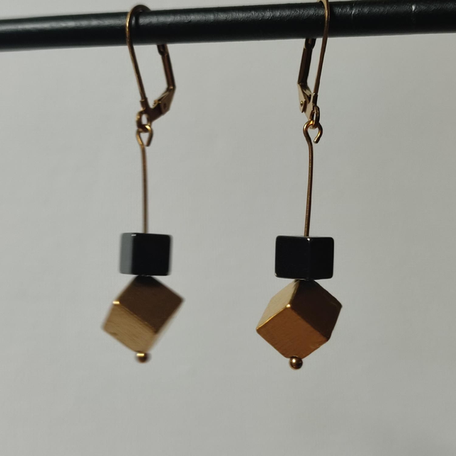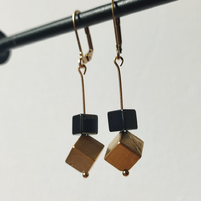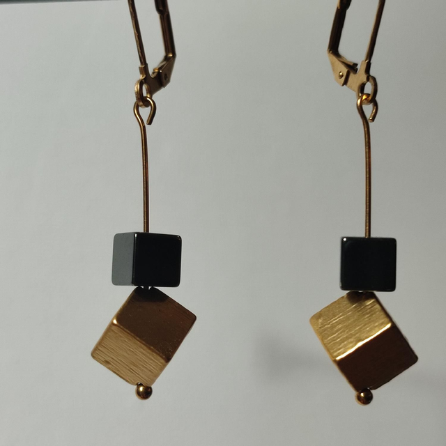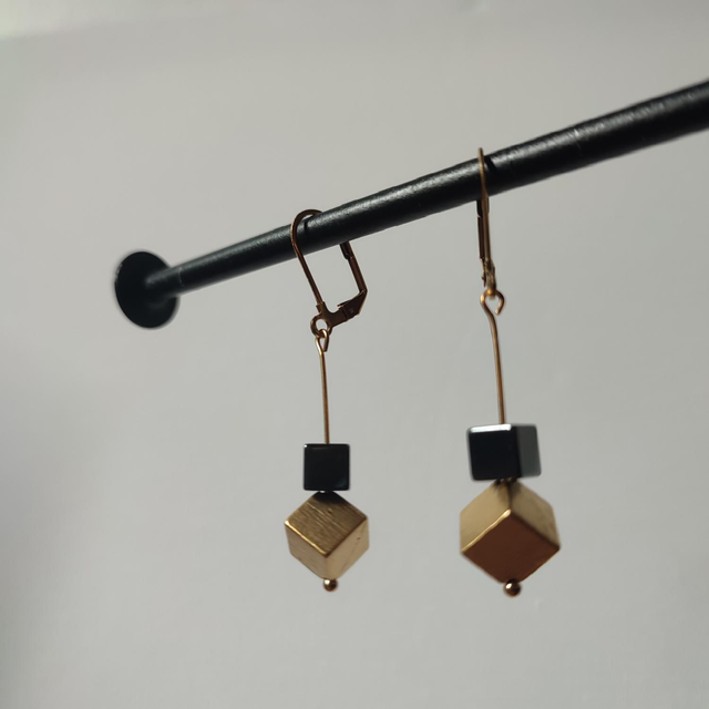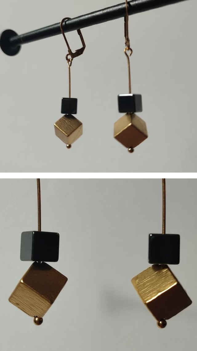 Cubes en hématite ( pierres) doré et noir acier inoxydable doré -sans nickel, pièce unique