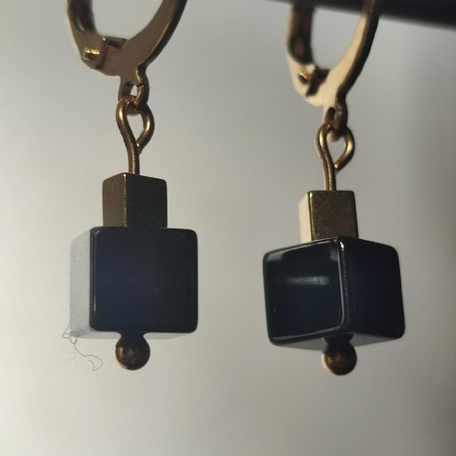 Dormeuses "cubes" noir et doré acier inoxydable doré -sans nickel, pièce unique