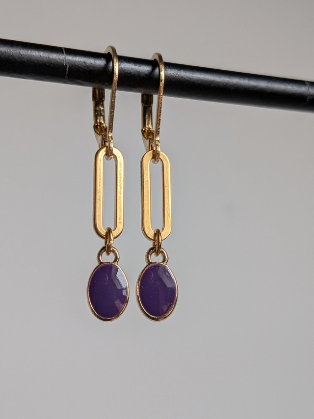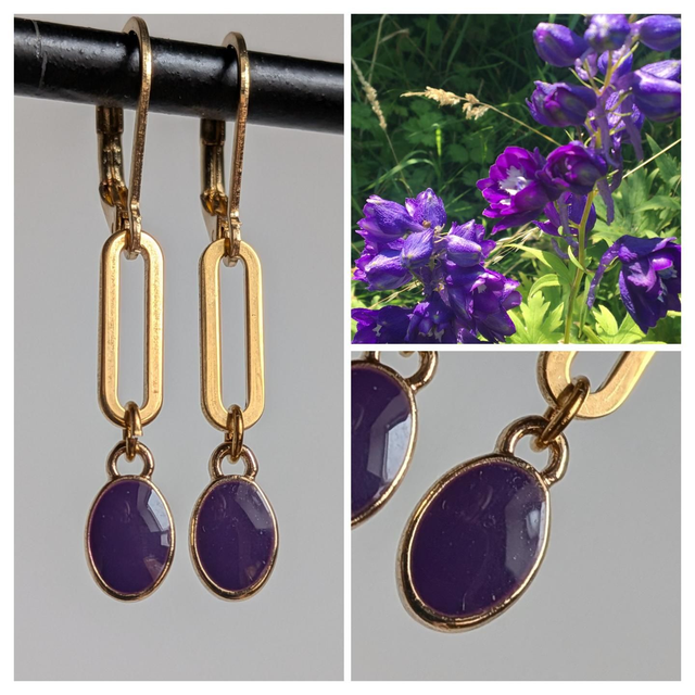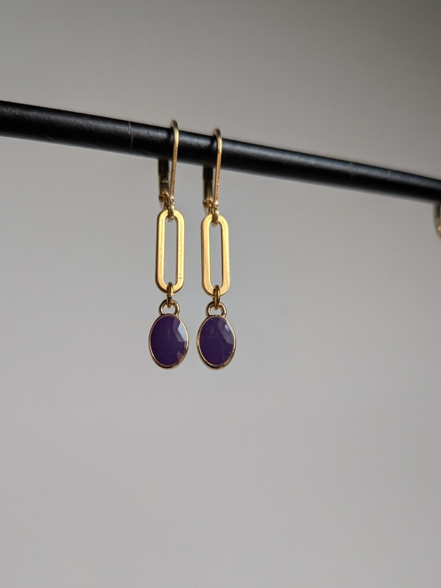 Boucles laiton , doré et perles en verre bleu/ brun , fermoirs laiton bronze -sans nickel, pièce unique
