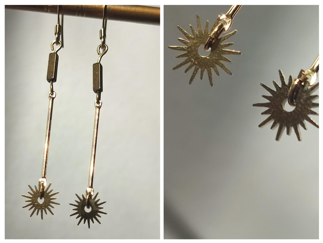 Étoiles et hématite ( pierres naturelles) acier inoxydable doré -sans nickel, pièce unique