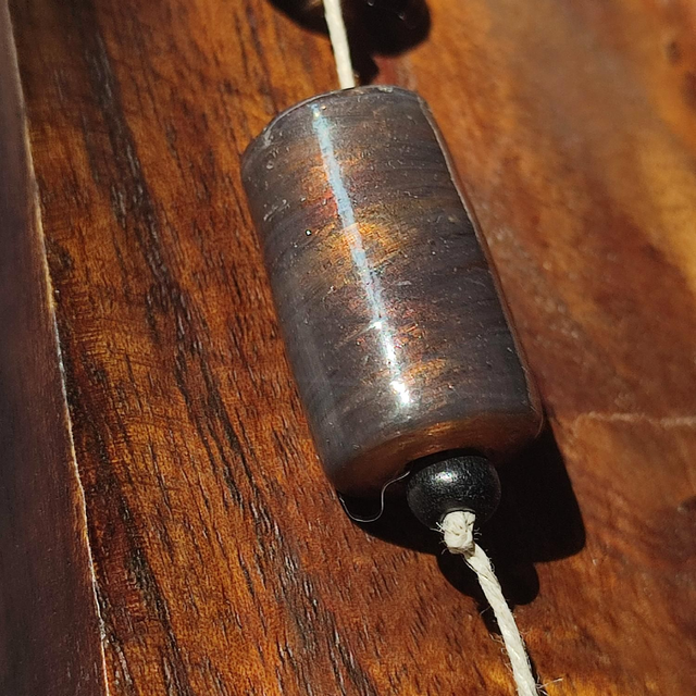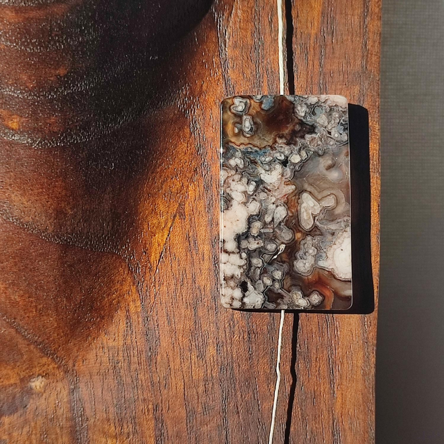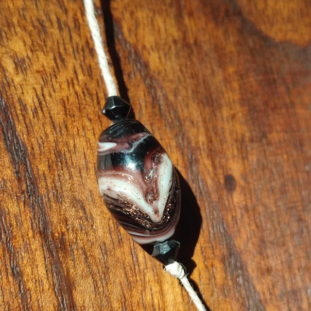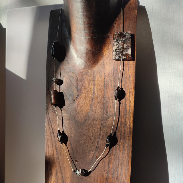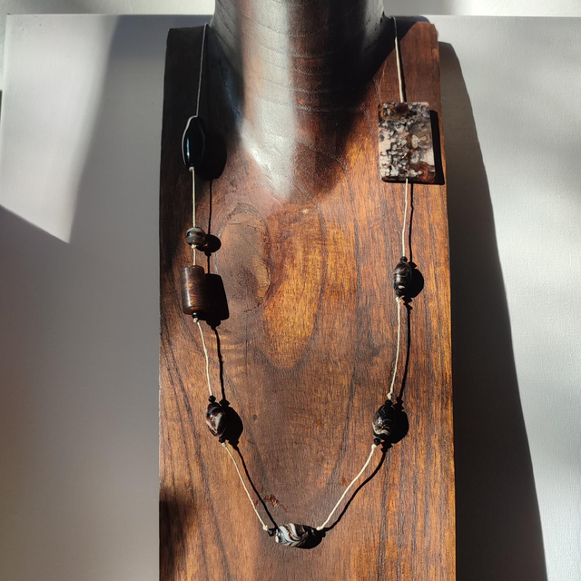 Sautoir agate rectangle , perles en verre mordorées "Murano"monté sur fil de lin réglable, pièce unique
