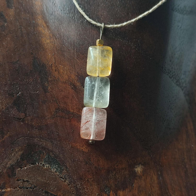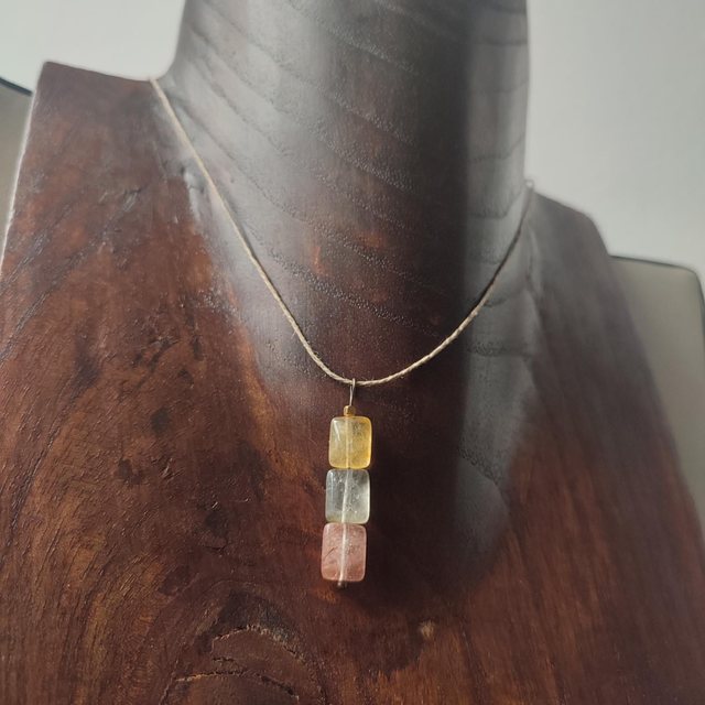 Collier : agate, citrine, cristal de roche :pierres naturelles monté sur fil de lin réglable, avec chaîne d'extension, pièce unique