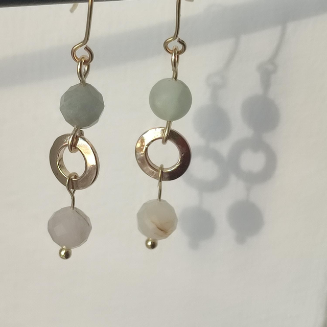 Agate et cercles, acier inoxydable doré -sans nickel, pièce unique