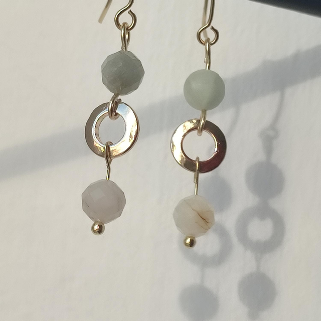 Boucles d'oreilles cercle en perles naturelles ( rubizoisite, agate verte et améthyste) fait main en pièce unique -sans nickel fermoirs en acier inoxydable doré