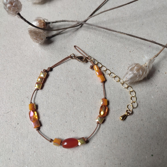 Agate et perles de verre monté sur fil de jade résistant et réglable avec chaîne d'extension en acier inoxydable doré, pièce unique