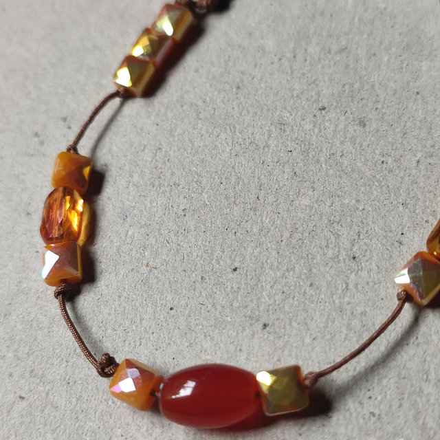 Z-Sautoir fleur en agate rouge - orange, perles en agate rouge foncé, anneaux bronze,réglable, pièce unique