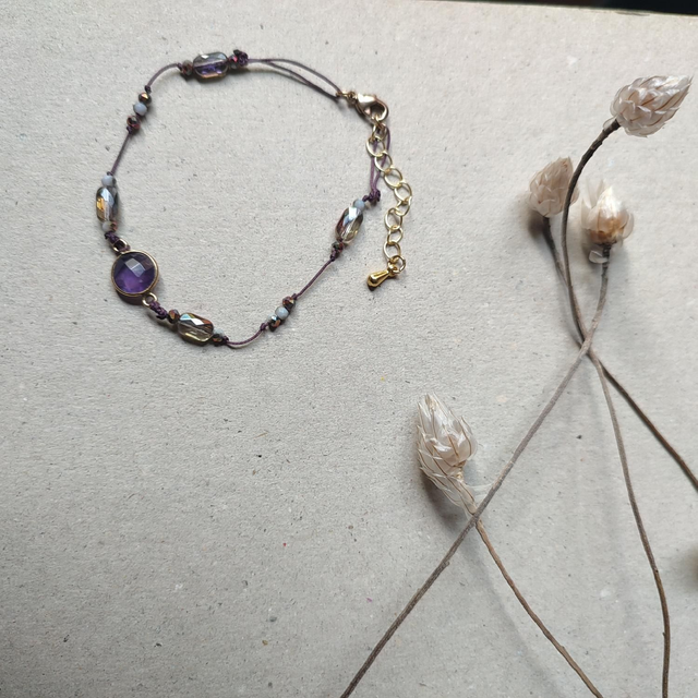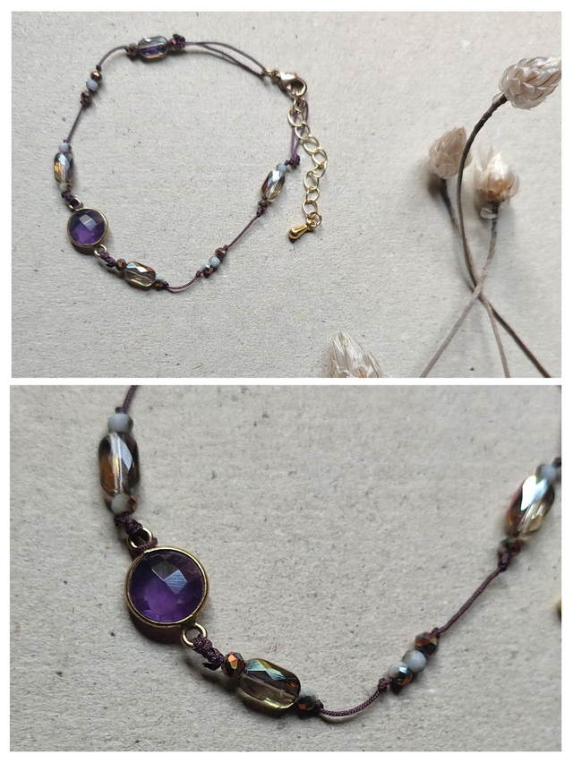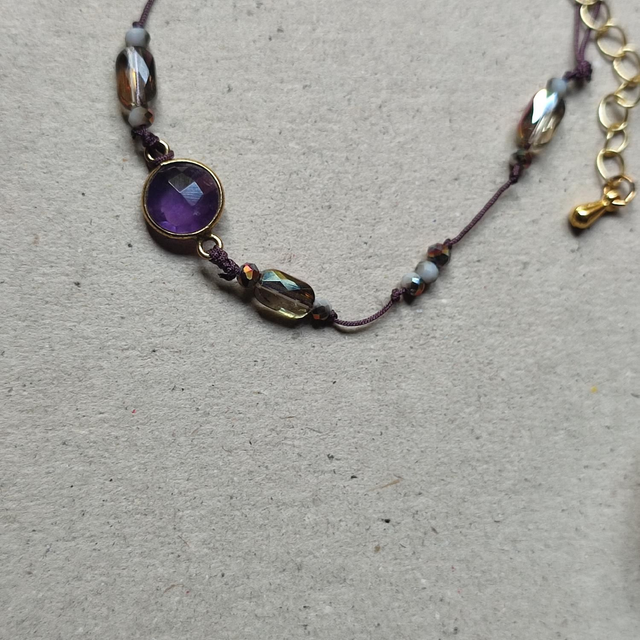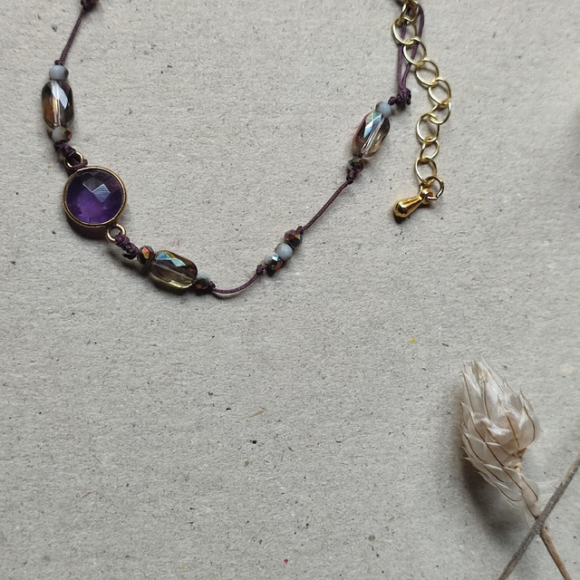 Améthyste et verre mordoré réglable avec chaîne d'extension en acier inoxydable doré, pièce unique