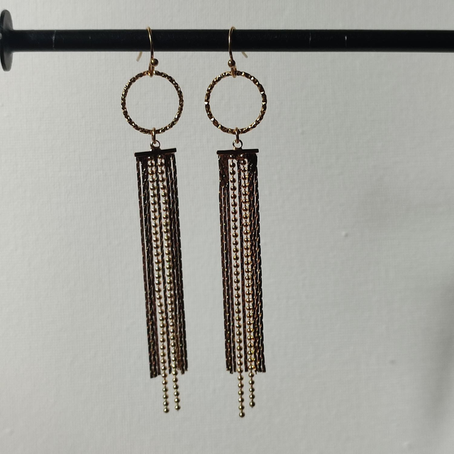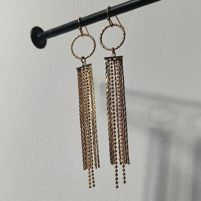 Boucles cercles ciselés et pampilles en acier inoxydable doré -sans nickel, pièce unique