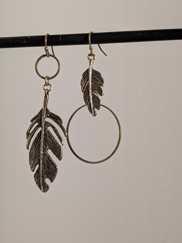 Boucles d'oreilles asymétriques"feuilles"en acier inoxydable doré -sans nickel, pièce unique
