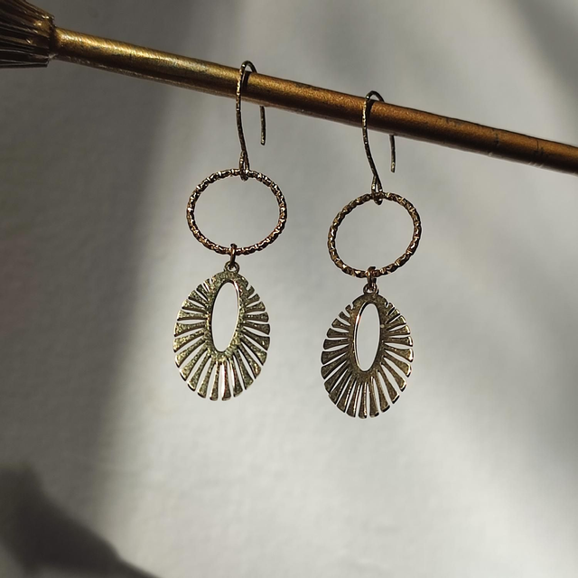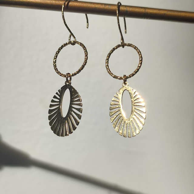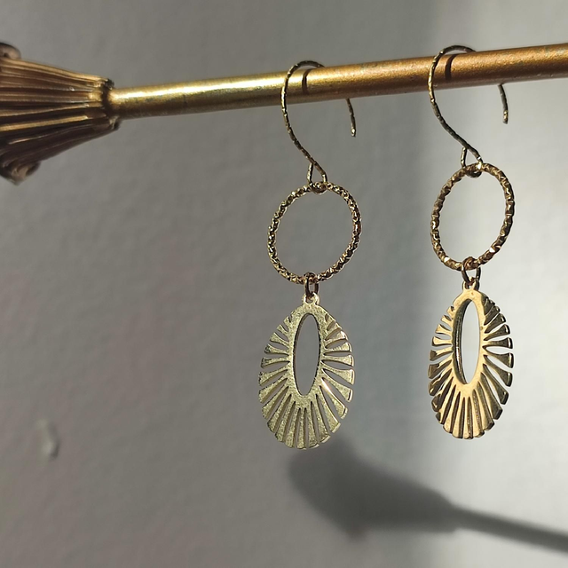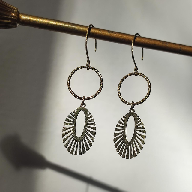 Boucles d'oreilles cercles ciselés en acier inoxydable doré -sans nickel, pièce unique