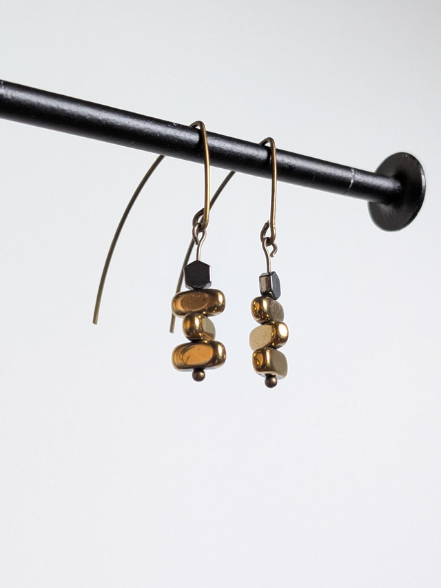 Boucles d'oreilles hématite doré et noir en acier inoxydable doré -sans nickel, pièce unique