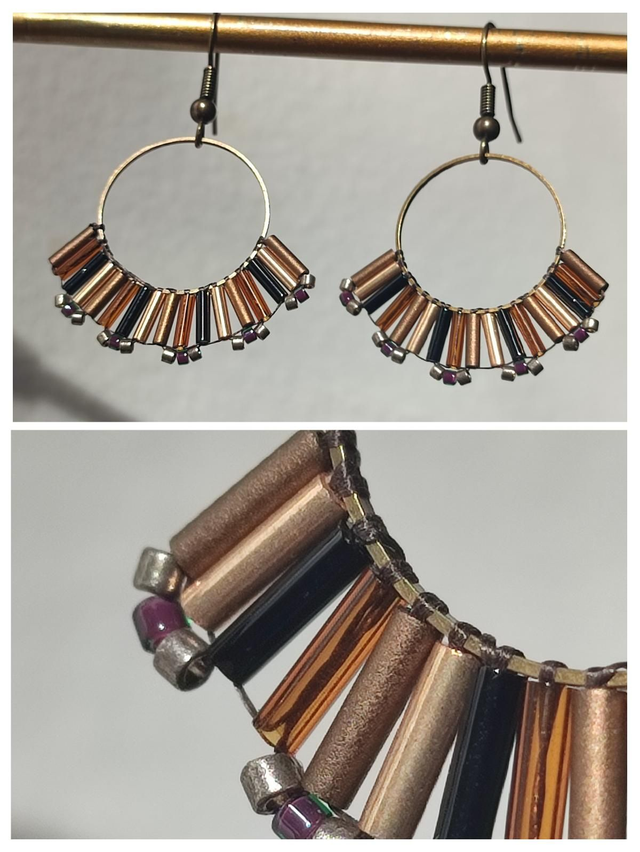 Boucles d'oreilles tissées main cuivre/doré en perles de verre japonaise, acier